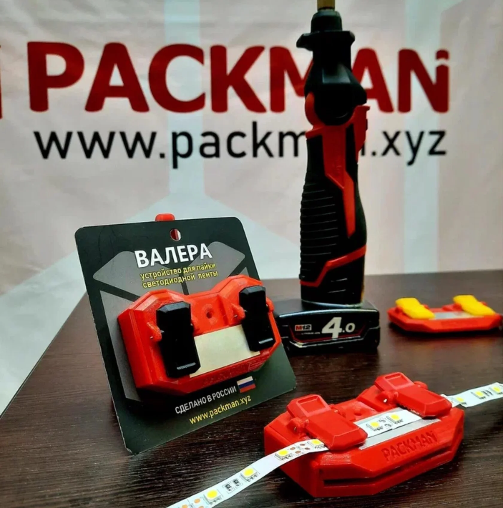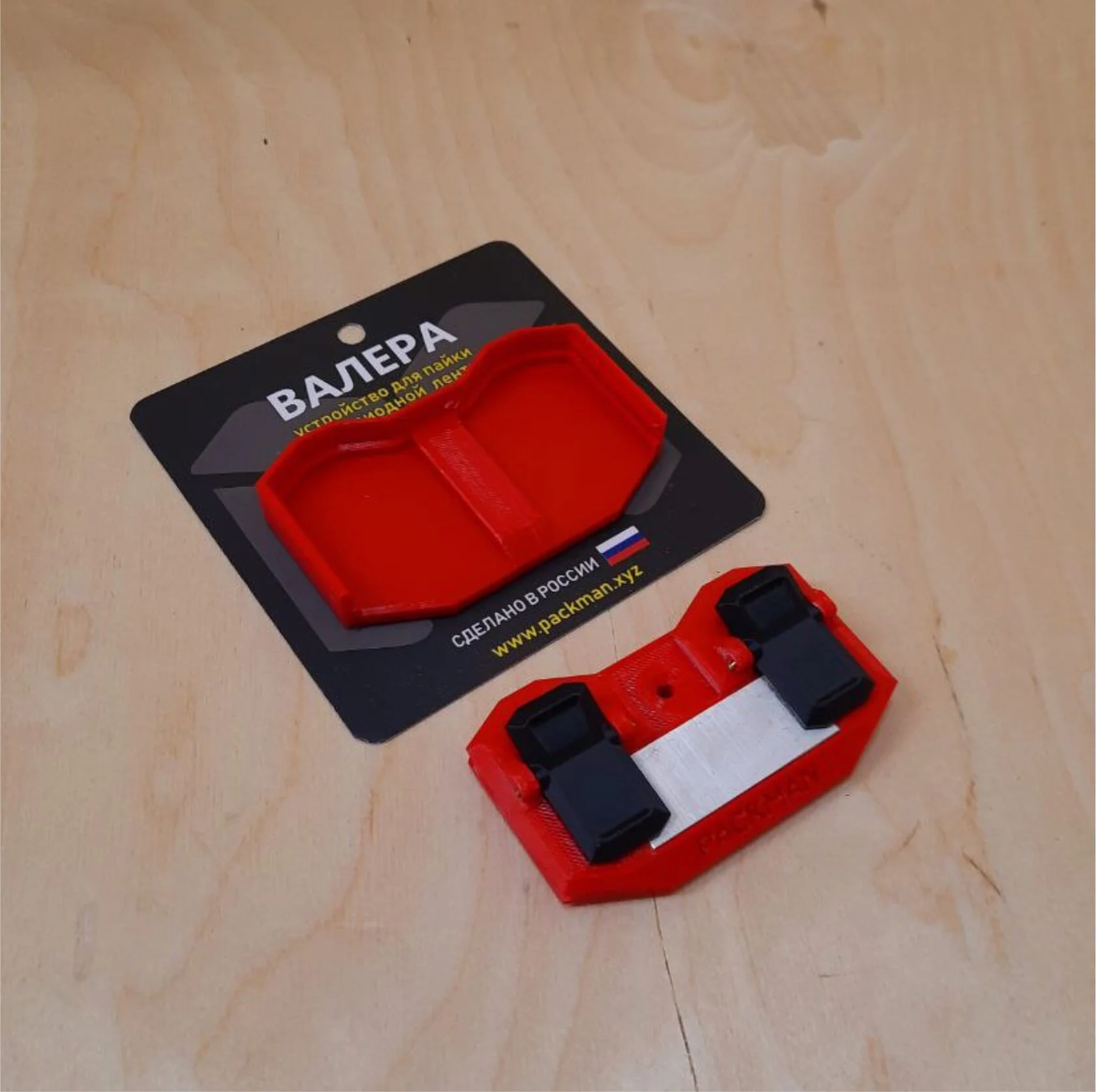 Устройство для пайки светодиодной ленты "ВАЛЕРА" предназначено для пайки путем прижима спаиваемых изделий, что освобождает руки.