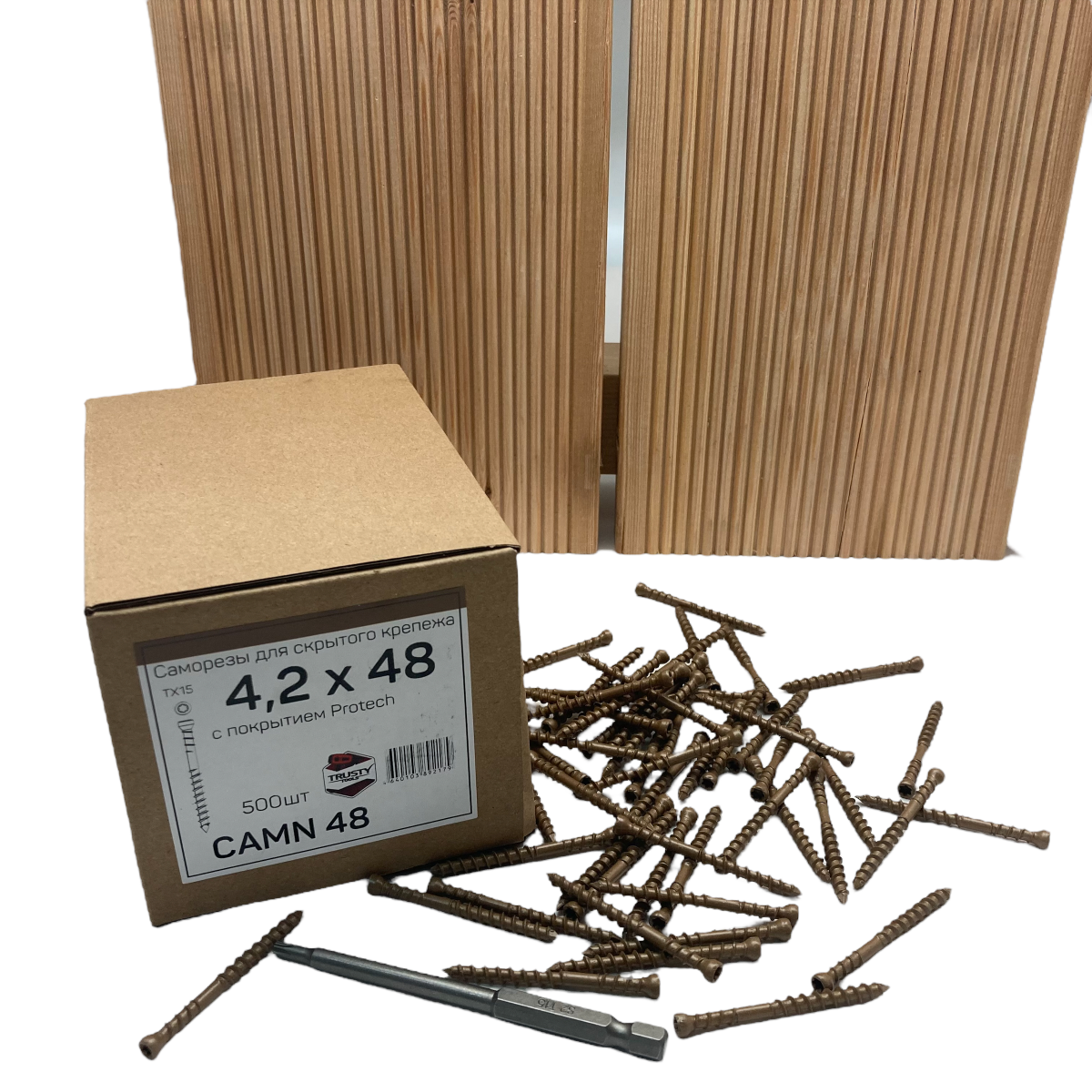 Саморезы для скрытого крепежа террасной доски с использованием кондуктора CAMO или аналога