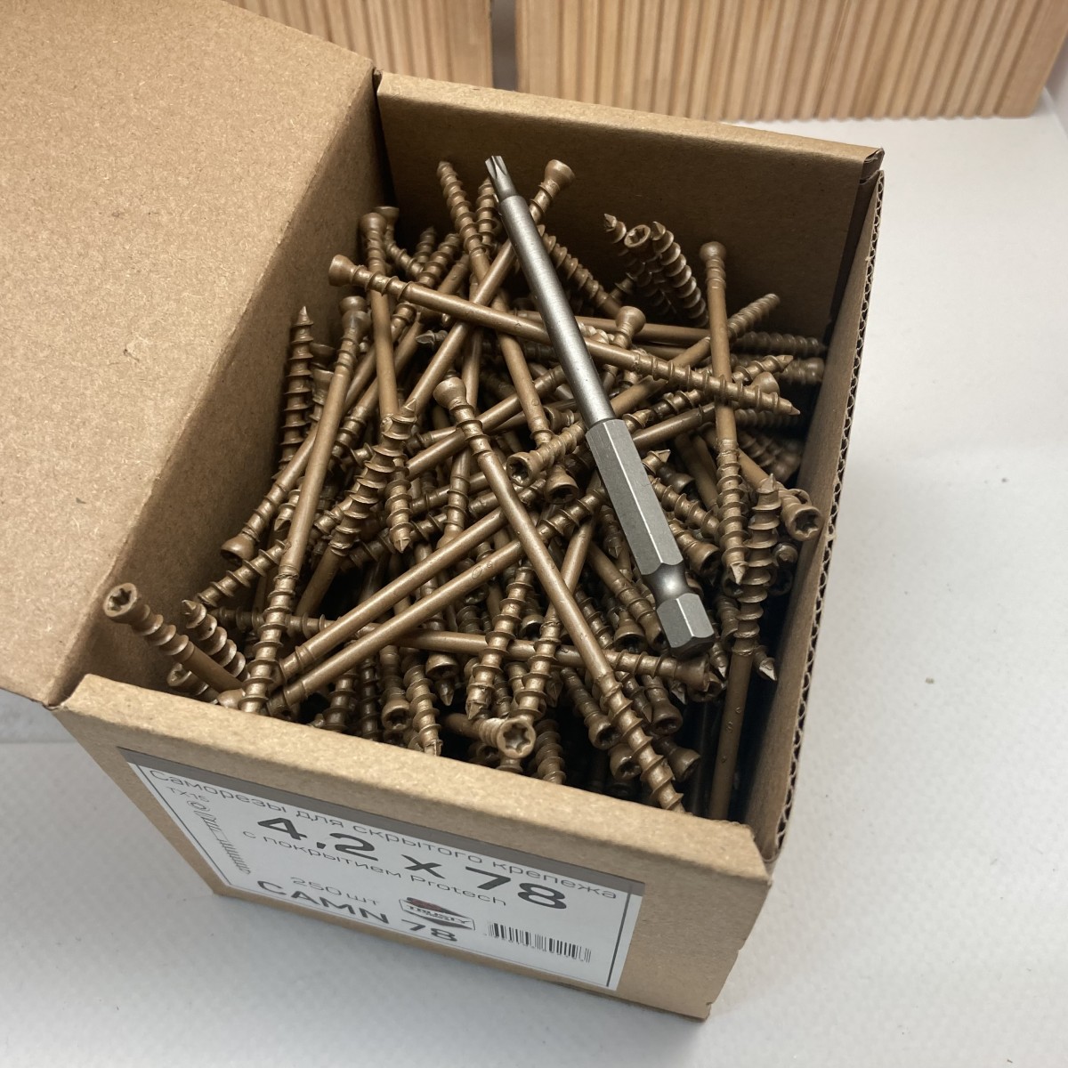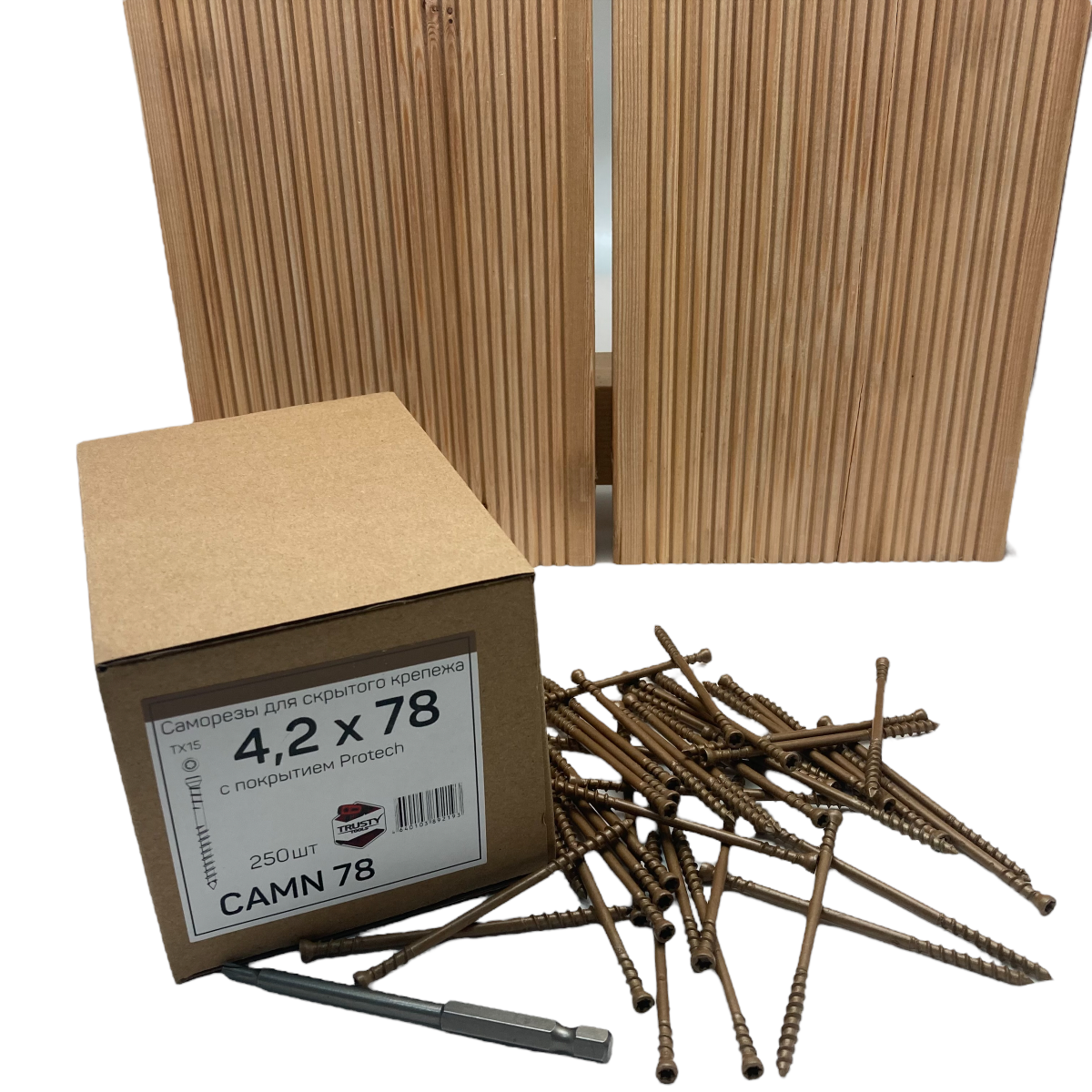 CAMD - саморезы из нержавеющей стали с покрытием Protech. Рекомендуются для уличных террас и фасадов из лиственницы, дуба и твердых пород.