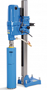 Установка алмазного бурения Keos KS-350 сверлит алмазными коронками отверстия в бетоне, железобетоне, кирпиче, асфальте и других материалах