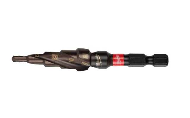 SHOCKWAVE™ Impact Duty™ ступенчатые сверла разработаны для использования с импульсными винтовертами: стандартный шестигранный хвостовик 1/4 " имеет специальную зону SHOCKZONE™, которая обеспечивает долговечность при работе импульсным инструментом